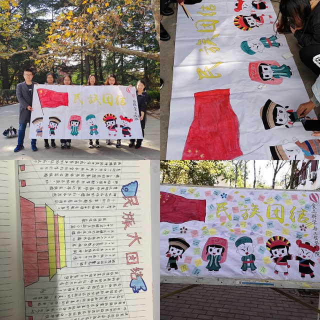 为确保主题团日的教育效果,各团支部在活动形式和内容上下了一番功夫,力求贴近学生生活,将民族团结教育深入学生身边。例如2016级食品科学与工程2班和3班两个团支部联合开展了“民族团结”主题手抄报制作及展览活动,手抄报主题选自《我和我的祖国》电影的相关内容,将主题教育和学生们的观影感受有机结合,强化教育效果;2016级海洋资源开发技术团支部开展典型人物事迹分享会,向同学们介绍了促进民族团结工作的库尔班·尼亚孜的先锋风采,引发同学们对于民族团结和选调生工作的思考。与此同时还在团支部开展了少数民族知识趣味问答活动,帮助同学们了解著名文学家老舍先生是满族正红旗人、回族是分布最广泛的少数民族、壮族是人数最多的少数民族以及新疆维吾尔自治区、宁夏回族自治区、西藏藏族自治州、广西壮族自治区、内蒙古蒙古族自治区是我国五大省级建制的少数民族区域等知识,拓宽同学们的知识面。此外其他团支部还开展了少数民族同学成长分享会、民族服装和文化介绍展、观看少数民族纪录片等主题系列团日活动。