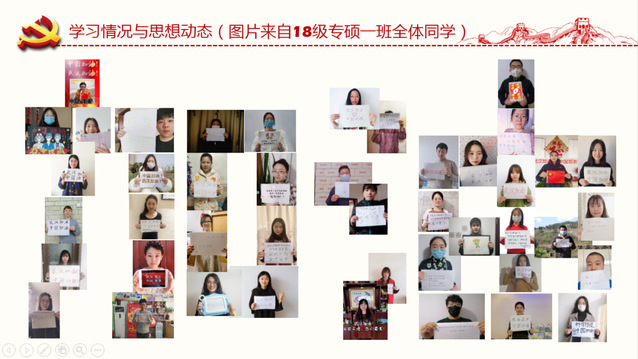 枫林网 开展以“到人民最需要的地方去——学习习近平总书记的回信”为主题的线上团支部活动,全体学生团支部参与了此次主题学习。在形式多样、内容丰富的团支部“云活动”中,团员青年们认真学习习近平总书记回信精神,并纷纷表示要用实际行动践行新时代青年的责任和担当,为全面打赢防疫攻坚战贡献青春力量。2016级食品科学与工程2班和3班团支部以团小组为单位开展学习并在线上进行学习心得的交流和讨论;2018级食品科学与工程2班团支部利用腾讯会议功能举行线上主题团会,互相交流学习感悟;2018级海洋资源开发技术团支部借助“语音电话会议”“视频电话会议”等工具进行线上实时交流;2019级食品科学与工程学硕1班团支部组织支部团员青年全体进行线上自主学习,并通过撰写心得体会线上分享的形式强化学习收获。部分团员青年发挥个人特长,通过诗歌、书画等载体生动表达了对疫情防控胜利的期待和对一线工作者的敬佩。