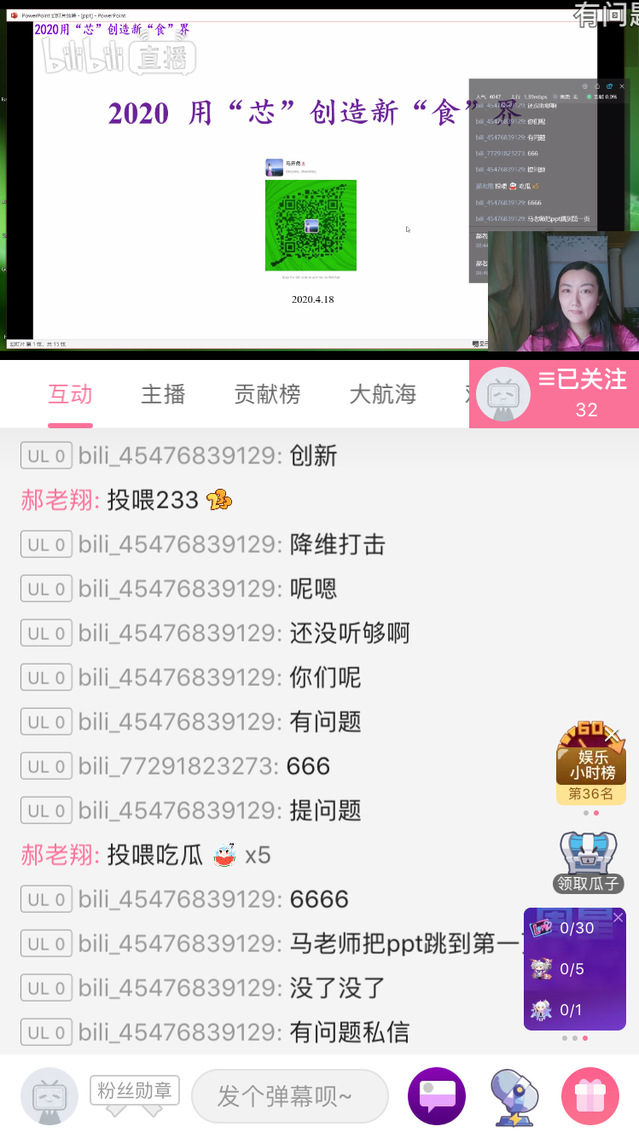 本站讯4月18日上午,枫林网 党委副书记程振明和专业教师马磊联合主讲的《用‘芯’创造新‘食’界》主题讲座及在线讨论通过BiliBili直播平台和腾讯会议等方式顺利开展。