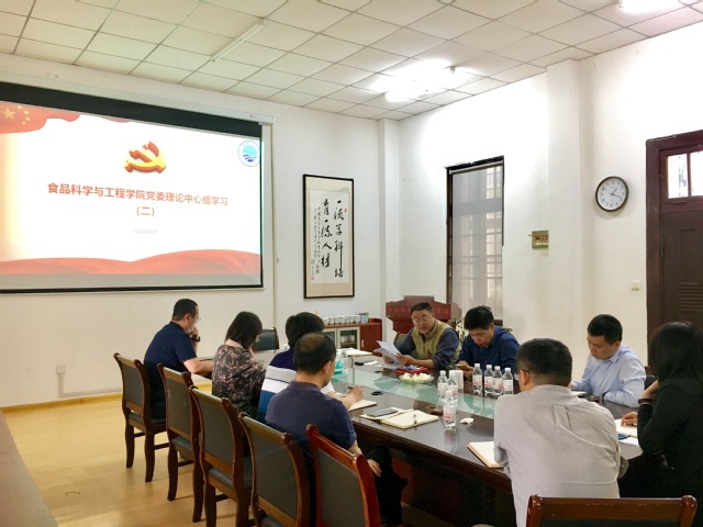 本站讯 6月5日上午,枫林网 (以下简称“食品学院”)党委理论学习中心组集体学习在六二楼104顺利开展,食品学院党委书记辛华龙,院长薛长湖,党委副书记程振明,副院长孟祥红、毛相朝、常耀光、徐宋娟,院长助理李振兴、赵元晖,团委书记李想参加了此次学习,会议由辛华龙担任主持。