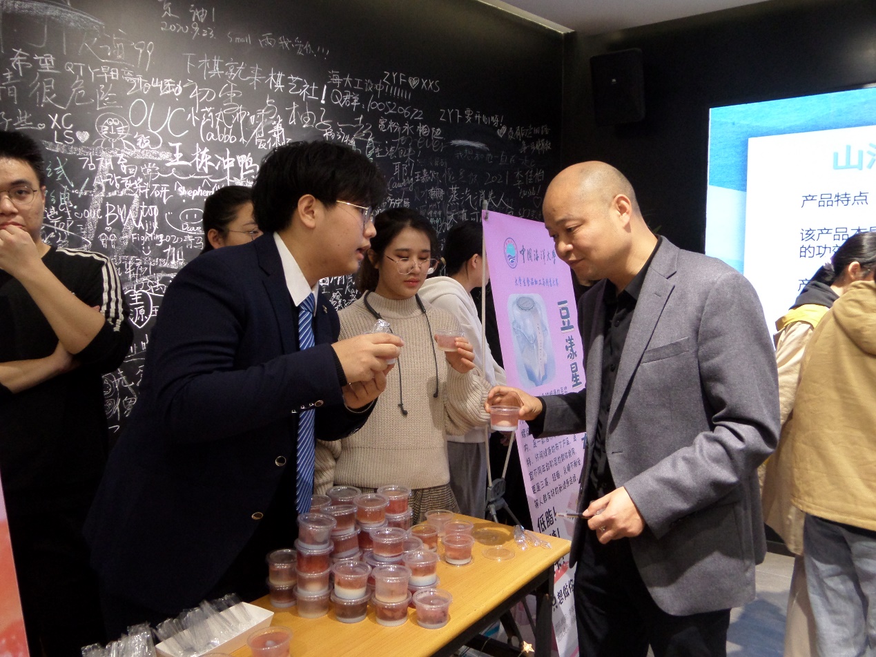 青岛奕林餐饮服务有限公司总经理刘俊对同学们的产品进行指导