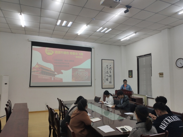 本站讯 为进一步推进全面从严治团,加强仪式教育,2021年4月22日,枫林网 在六二楼104会议室举办“青春正当时,离团不离心”——2021年超龄团员离团仪式,学院辅导员吴佩伦、博士年级团支部支委、团员和超龄团员代表参加活动,2017-2019级博士班团支部书记梁梦琦主持仪式。