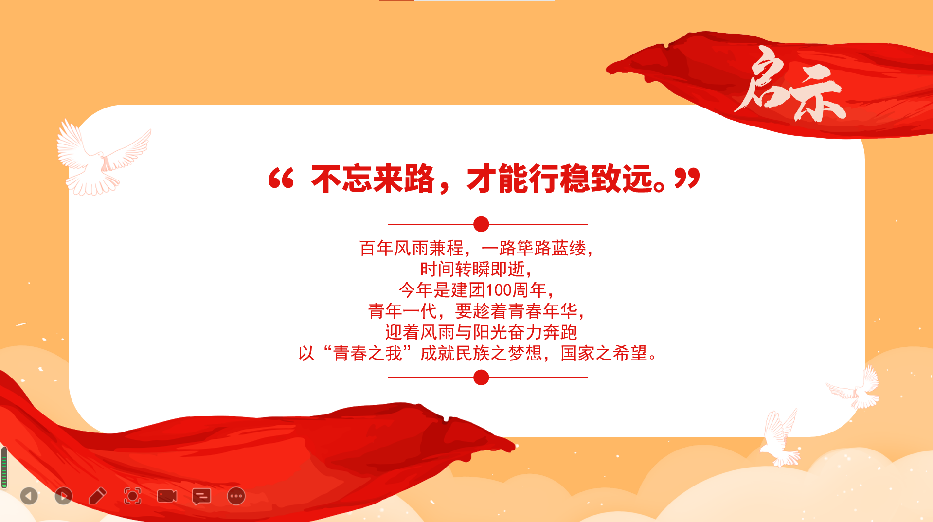 随后,班级宣传委员余庠颖主持了“我和我的共青团”主题团会,辅导员张川和班级全体同学参加。团会第一部分,余庠颖带领同学们共同回顾了共青团的相关基本知识,随后,集体观看了建团百年历史回顾的总结视频。“百年风雨兼程,一路筚路蓝缕”,先辈们艰苦卓绝的奋斗故事让同学们敬佩不已,也激励了更多的青年团员在未来为祖国建设和民族复兴贡献自己的青春力量。最后,同学们共同学习了两会精神并就两会相关话题展开讨论。