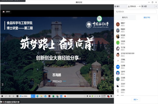 图3 2020级博士研究生苏海鹏“互联网+”创新创业大赛经验分享