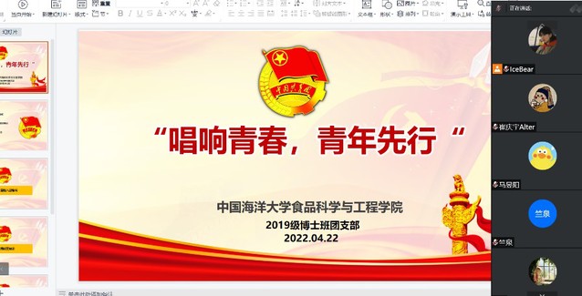 2019级博士班团支部采用线上会议学习中国共青团奋斗历史方式,带领团员进一步学习中国共青团精神。中国共产主义青年团成立于20世纪20年代,在中国共产党领导下,中国青年团组织在动荡时局中逐步发展,从1921年11月到1922年5月,在全国17个城市建立了地方青年团组织,团员总数达5千多人。中国社会主义青年团的创建顺应了五四运动以后中国青年运动的发展形势,适应了广大进步青年在五四运动后日益增长的民主主义革命要求,在中国青年运动中树起了一面旗帜,引导青年加入中国共产党领导的革命大军,向着光明奋勇前进。