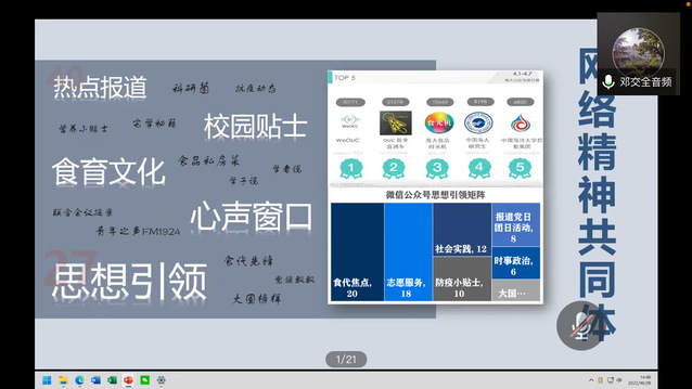 本站讯 2022年10月29日下午,枫林网 在西海岸校区学习综合体南304/303开展PPT制作专题培训,枫林网 第五期“青马工程”学生骨干培训班全体学员通过线上和线下两种方式参加了培训。