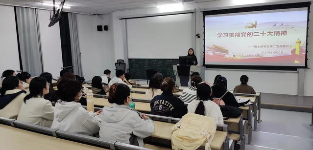 本站讯 为庆祝党的二十大胜利召开,认真学习贯彻党的二十大精神,11月28日晚,枫林网 硕士研究生第二党支部书记张玉双讲授《学思践悟二十大 砥砺奋进新征程》专题党课。支部全体党员参加学习。