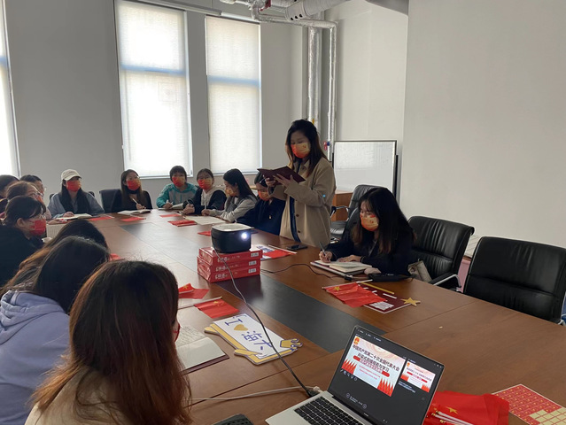 硕士研究生第二党支部书记岳子琳讲授题为《喜迎党的二十大 创新聚力当先锋》的专题党课,党支部全体成员共同参加了此次学习。