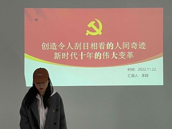 蔡梦婷同志表示我国已经实现全面建成小康社会的目标,并取得“两个确立”重大政治成果。在新时代十年来,中国特色社会主义制度更加成熟,制度优势更加彰显。李颖同志在分享中讲到中国共产党的领导是中国特色社会主义最本质的特征,做好中国事,关键在党。章晋敏同志表示新时代创造的伟大成就,实现的伟大变革,最根本在于有习近平总书记作为党中央的核心,在于有习近平新时代中国特色社会主义思想的科学指引。刘艳星同志通过一个简短震撼的视频让在场同志了解到这非凡的十年创造的伟大成就。