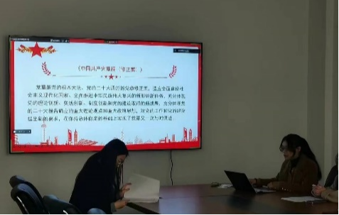 会议开始,三名预备党员江姗、赵雯静、谢逸祥借助《党的二十大报告学习辅导百问》、《中国共产党章程(修正案)》等材料,带领支部全体党员认真学习党的二十大报告中提出的新理念、新战略、新论断,促进全体党员深入理解党的二十大对党章的重要修改内容。会议着重强调了“中国共产党为什么能,中国特色社会主义为什么好,归根到底是马克思主义行,是中国化时代化的马克思主义行”。我们要始终把握“能”“行”“好”三者之间紧密的内在逻辑关联,这对于新时代推进中国特色社会主义事业发展,加强中国共产党自身建设具有重要意义。在心得交流环节,胡芳滨同志给诸位党员分享了自己对于党的二十大精神的理解。她表示,同志们需要坚持每日常态化的思想政治理论学习,要借助好学习强国等理论学习平台,深化思想认识。
