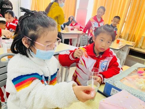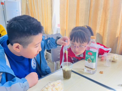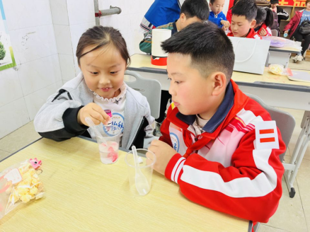 接着,糖糖老师和小朋友们一起探索了“五彩棉花糖”的奥秘,科普了“人工色素”与“天然色素”的食品知识并引导大家树立起“除去剂量谈毒性,都是不科学”的食品安全意识。这个充满甜蜜的过程,不仅帮助小朋友们更深刻地理解了食品相关知识,更重要的是让孩子们体会到了动手实践的快乐。相信这甜甜的棉花糖一定会为孩子们留下甜甜的童年回忆!