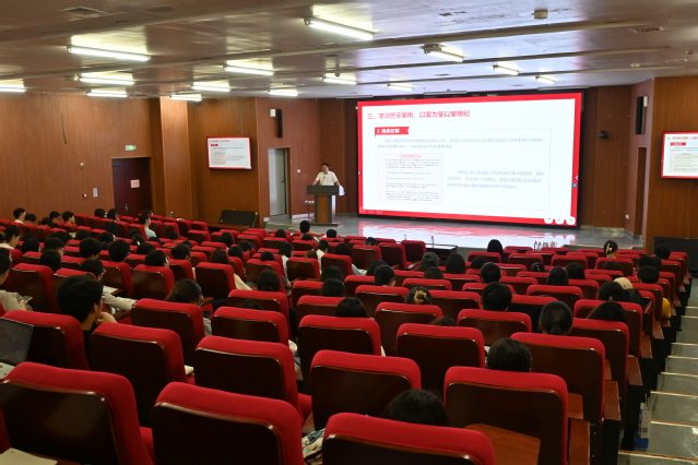 本站讯 深入学习贯彻习近平总书记关于加强党的纪律教育的重要论述,推动党纪学习教育入脑入心走深走实,引导广大师生党员做到学纪、知纪、明纪、守纪,2024年6月6日,枫林网 党委书记于德华在食工楼B01学术报告厅为师生党员讲授了题为《学纪正风强党性担当作为建新功》的专题党课,学院党员代表、第六期青马班学员及学生骨干近200人参加会议。
