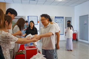 随后,在正午时分的食工楼大厅,由学院工会、学生会、研究生会提前筹备的教师节惊喜抽奖活动正式开启。工作人员精挑细选的每一束鲜花、每一件融入海大元素的文创礼品,都满含学子们对老师的感恩与祝愿,让惊喜与温暖在现场流转。