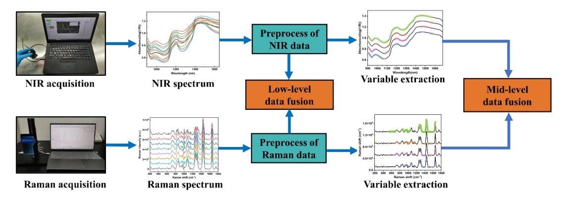 多模态近红外-拉曼光谱数据融合检测大西洋鲑鱼TVB-N流程图